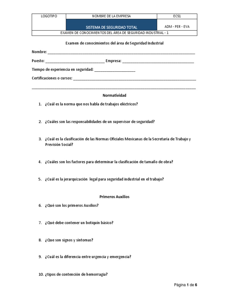 EXAMEN DE CONOCIMIENTOS DEL ÁREA DE SEGURIDAD INDUSTRIAL - 1