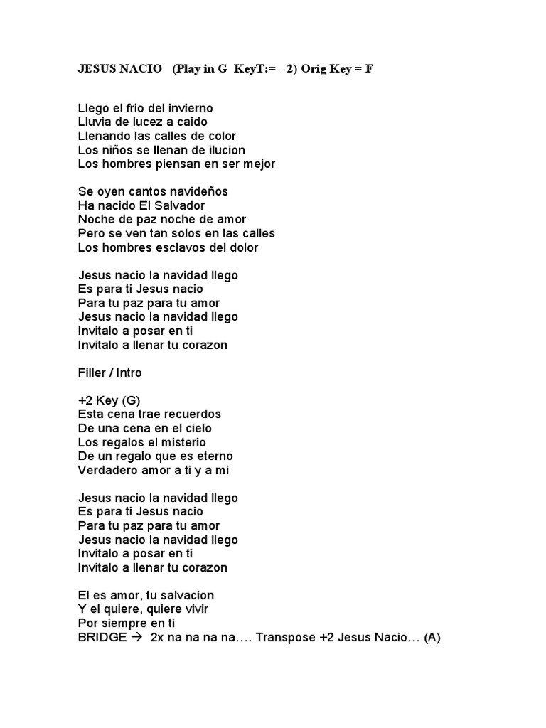 JESUS NACIO (Play in G KeyT:= -2) Orig Key = F