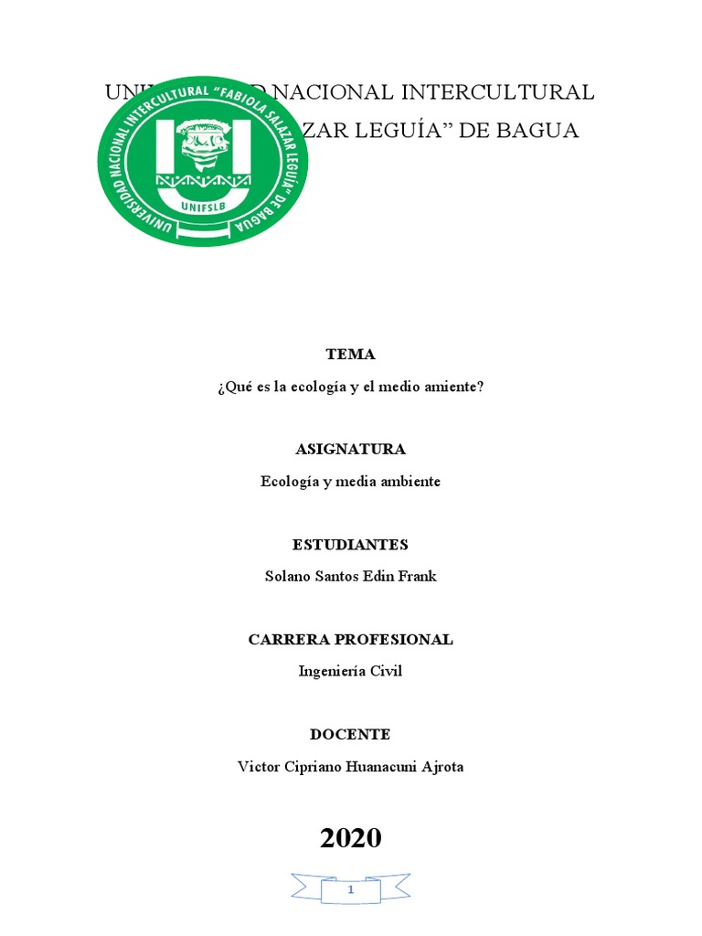 El siguiente trabajo académico que consiste en describir y analizar la ecología en sus