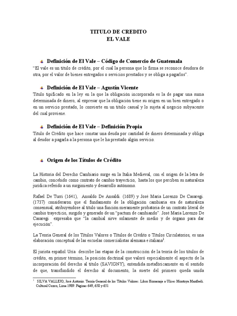 El vale es un título de crédito que tiene la promesa de pagar una determinada