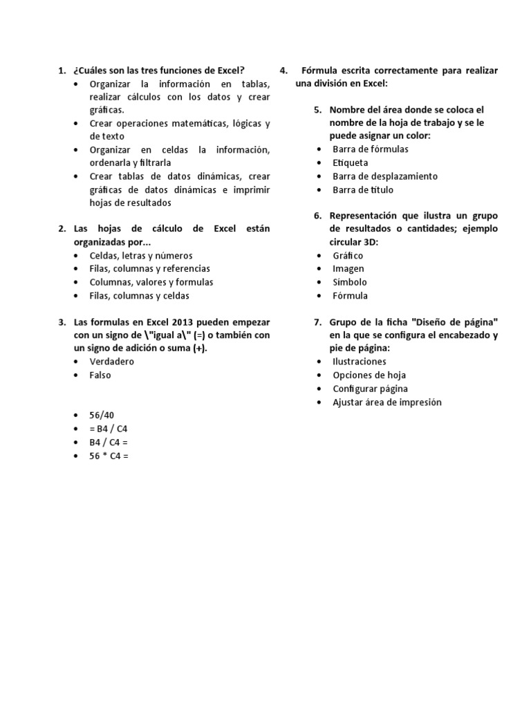 1. ¿Cuáles son las tres funciones de Excel? 4.