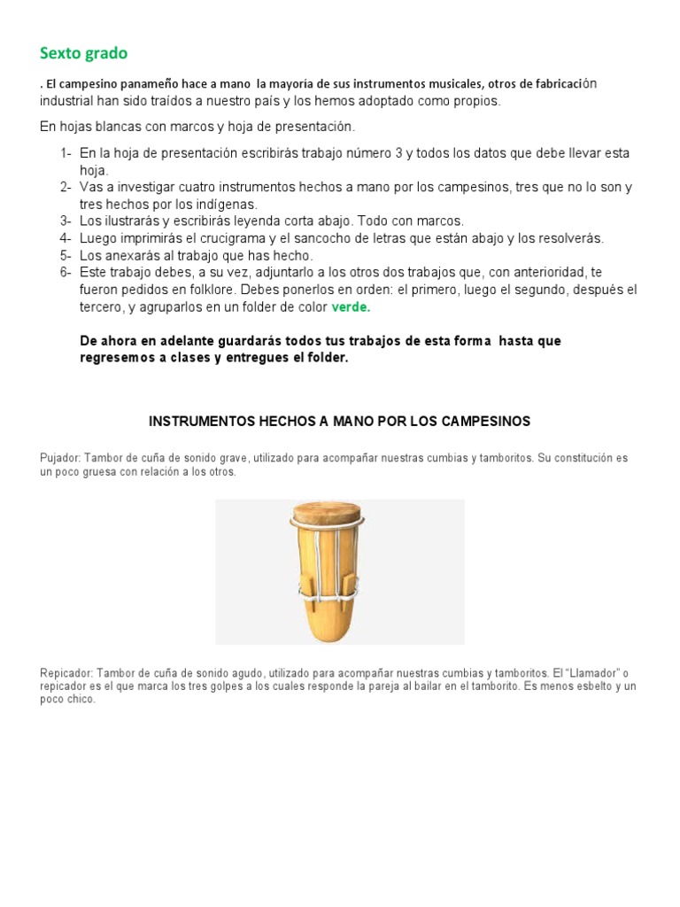 2- Vas a investigar cuatro instrumentos hechos a mano por los campesinos, tres que no lo son y