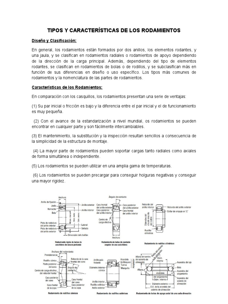 TIPOS Y CARACTERÍSTICAS DE LOS RODAMIENTOS
