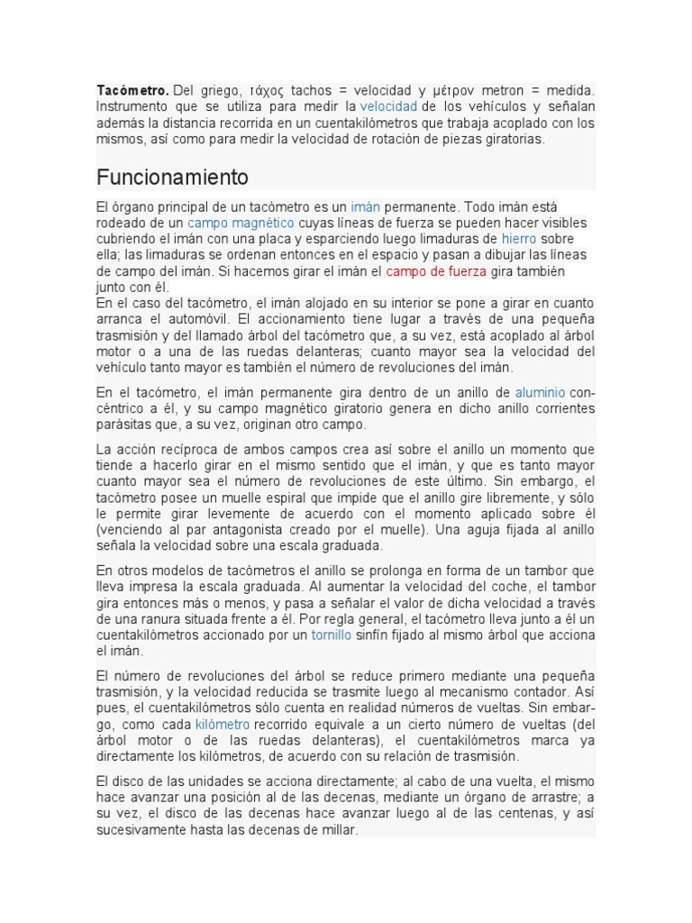 El órgano principal de un tacómetro es un imán permanente. Todo imán está