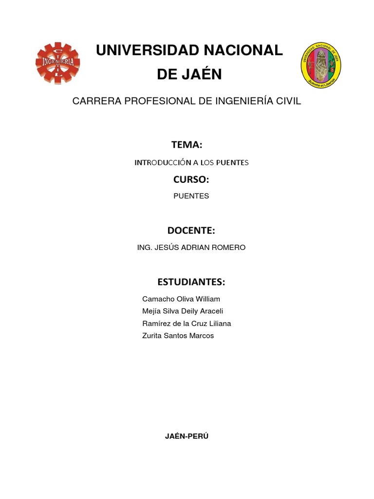 2) trabajo INTRODUCCIÓN A LOS PUENTES. Historia, clases, características, tipos, materiales,