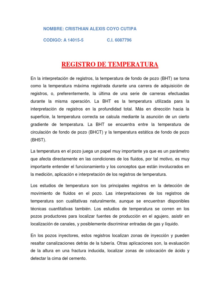 pozo. El término “Registro de temperatura” generalmente se refiere a un registro