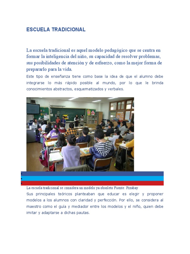 La escuela tradicional es aquel modelo pedagógico que se centra en