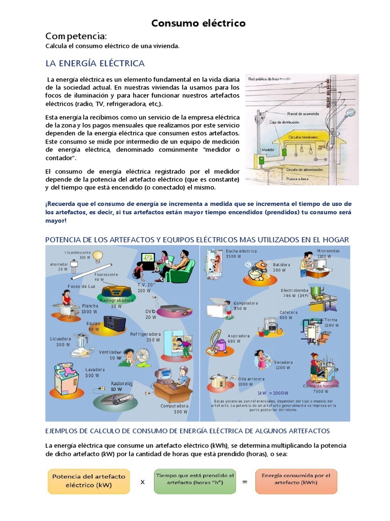 La energía eléctrica que consume un artefacto eléctrico (kWh), se determina multiplicando la potencia