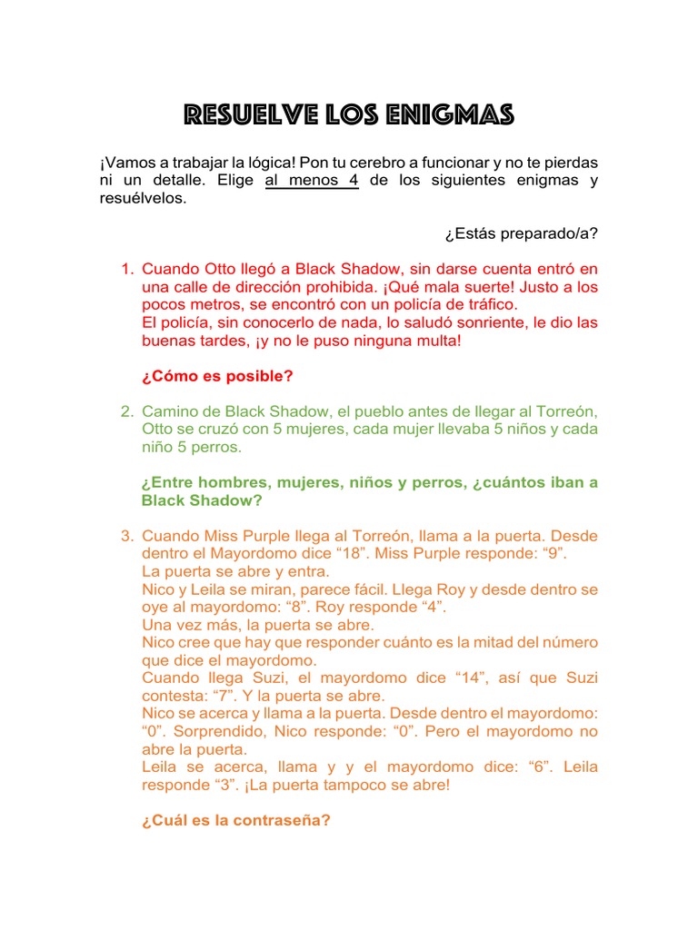 ni un detalle. Elige al menos 4 de los siguientes enigmas y