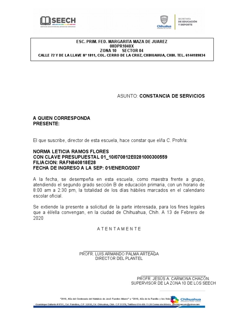 El que suscribe, director de esta escuela, hace constar que el/la C. Profr/a: