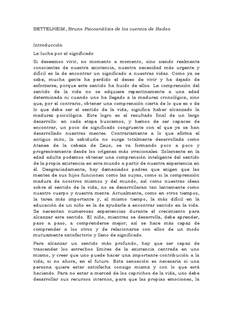 BETTELHEIM, Bruno Psicoanálisis de los cuentos de Hadas