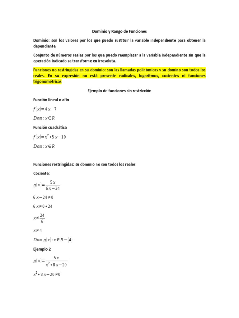 Dominio: son los valores por los que puedo sustituir la variable independiente para obtener la