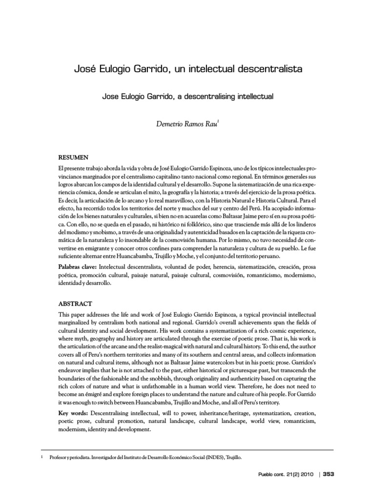 intelectuales provincianos marginados por el centralismo Garrido, peruana (Huancabamba, Piura); quien a todos