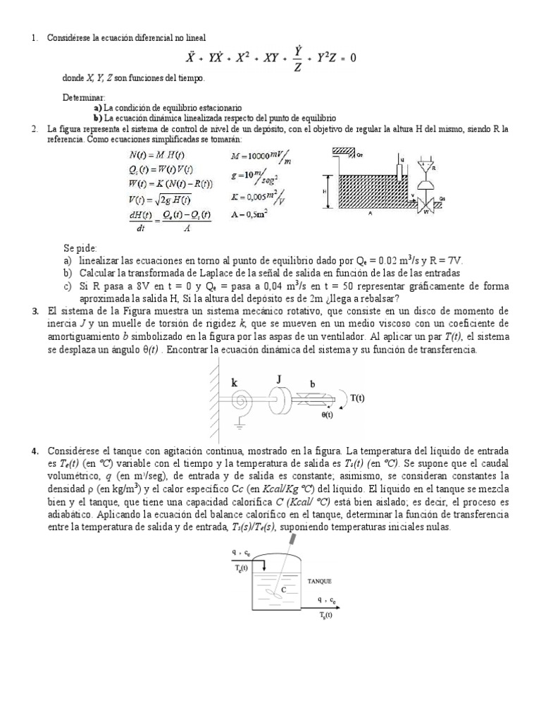 4. Considérese el tanque con agitación continua, mostrado en la figura. La temperatura del líquido de entrada