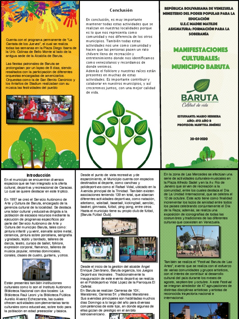 Lo cual se quiere destacar en este tríptico. Avenida principal de la Trinidad. También existen comunidad, entre los cuales destaca el Día