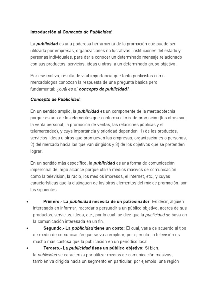 del concepto de publicidad, la resumiré de la siguiente manera: