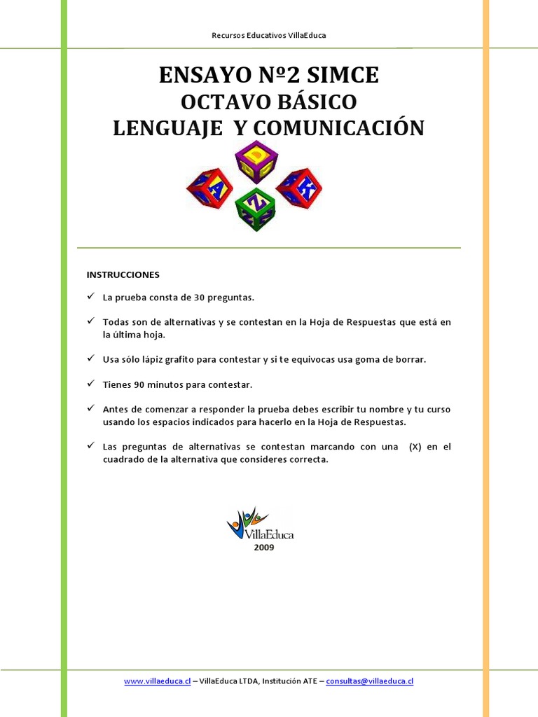 ENSAYO Nº2 SIMCE OCTAVO BÁSICO