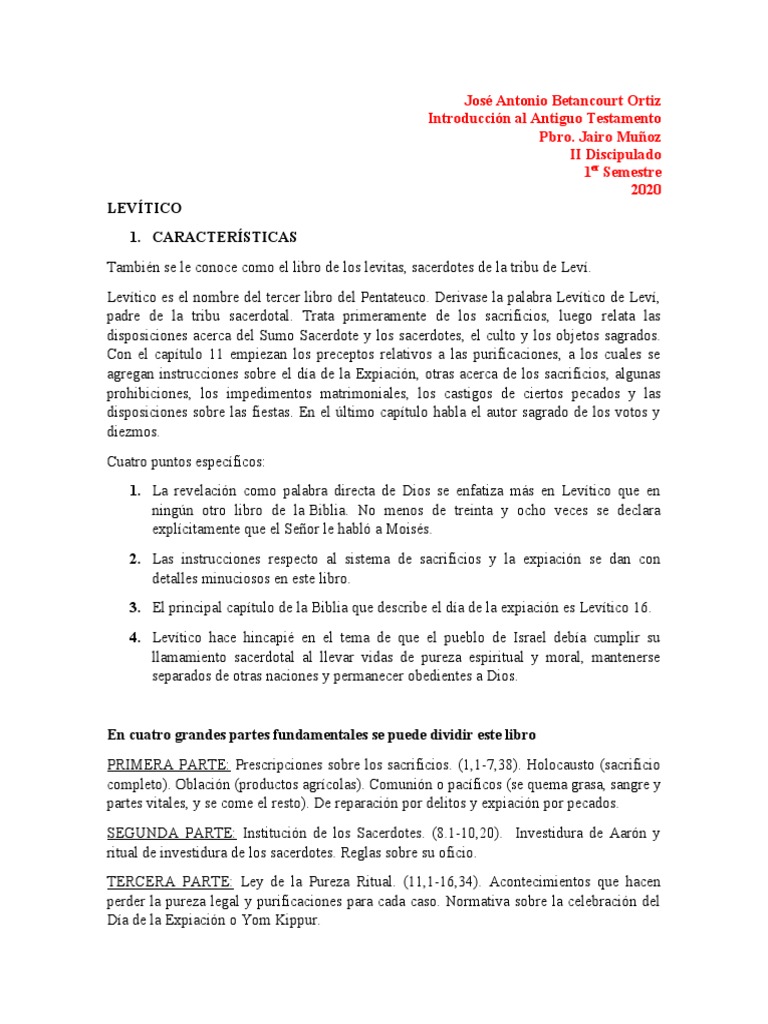 Levítico es el nombre del tercer libro del Pentateuco. Derivase la palabra Levítico de Leví,