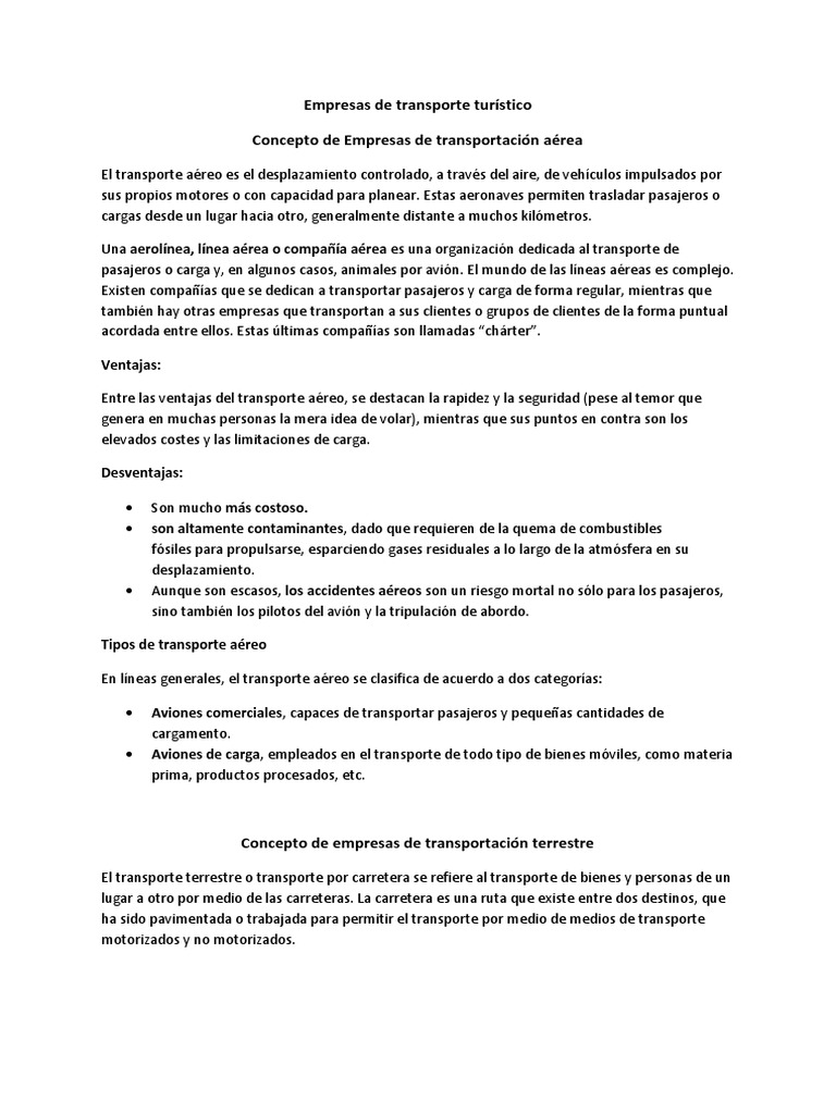 Los medios de transporte permiten al turista desplazarse desde su lugar de origen al lugar de