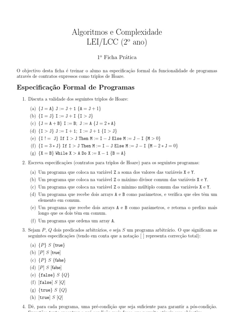(b) Escreva uma pré-condição para uma especificação de correcção total para este programa.