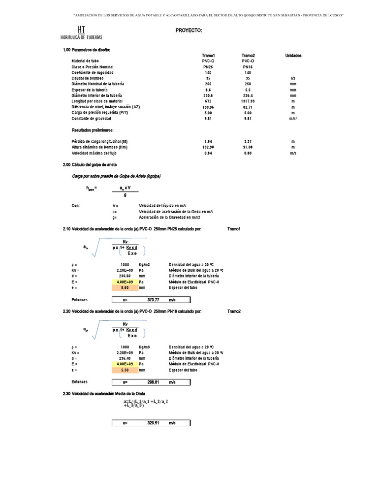 2.70 Cálculo de la sobrepresión por golpe de ariete