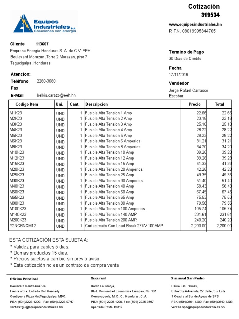 Empresa Energia Honduras S. A. de C.V. EEH Término de Pago