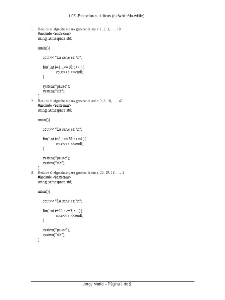 1. Realice el algoritmo para generar la serie: 1, 2, 3, …, 10