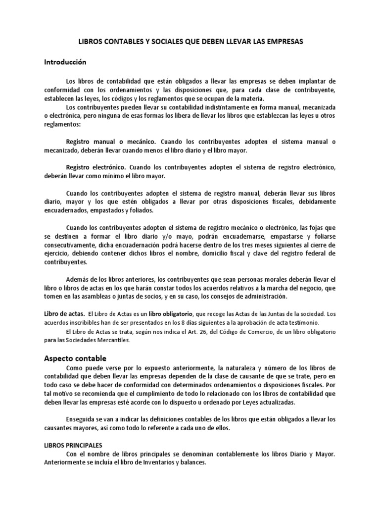 LIBROS CONTABLES Y SOCIALES QUE DEBEN LLEVAR LAS EMPRESAS