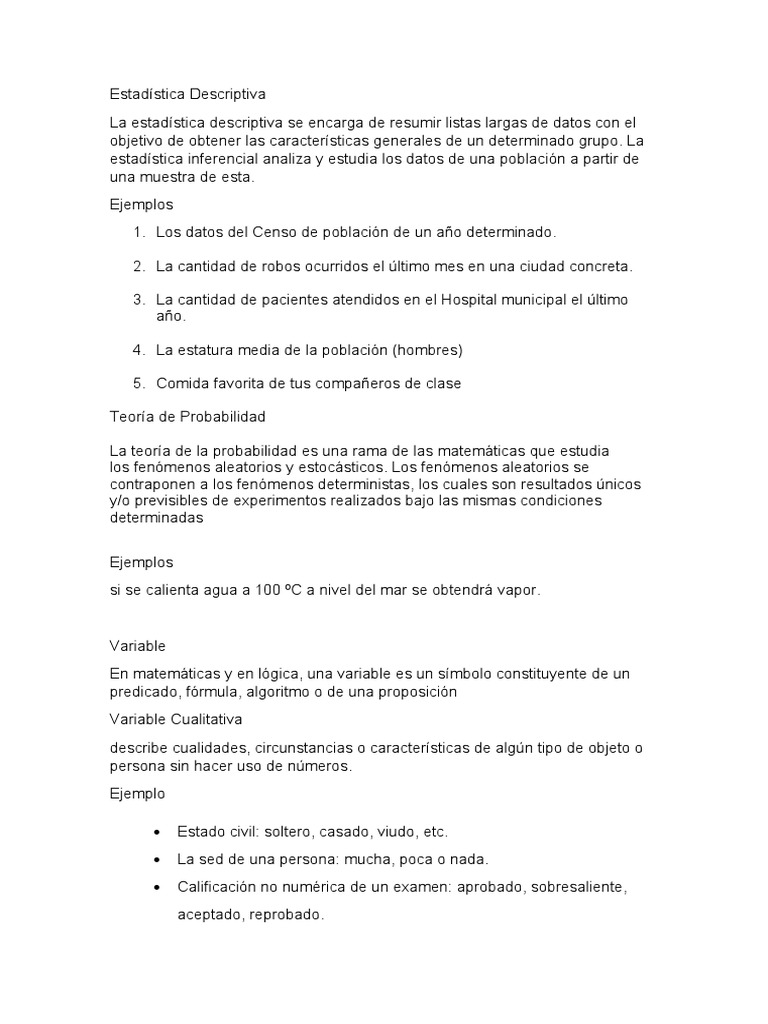 La estadística descriptiva se encarga de resumir listas largas de datos con el