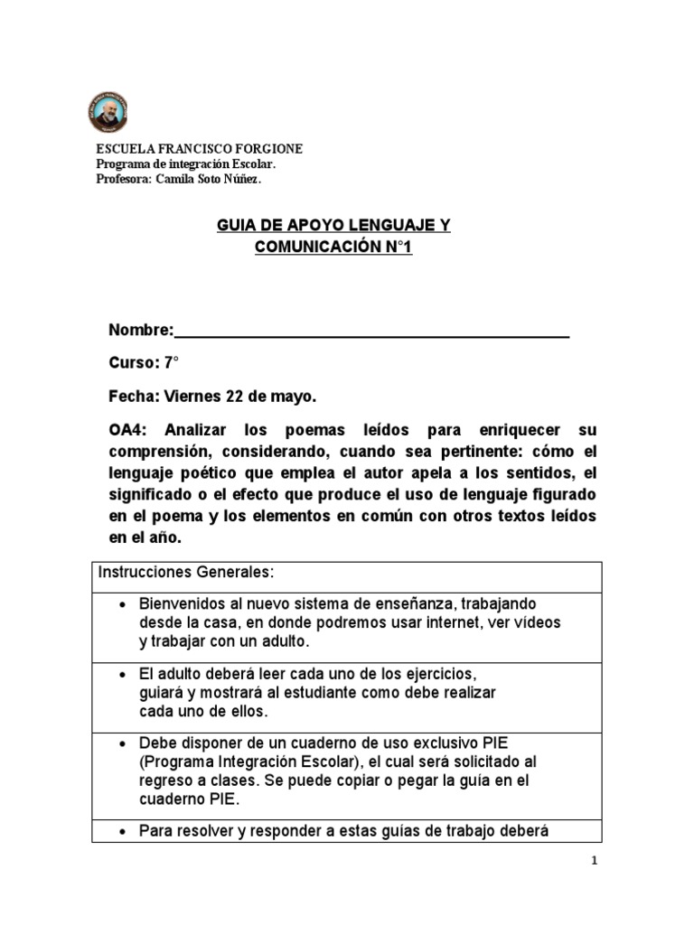 Lee atentamente el poema y luego desarrolla en tu cuaderno las