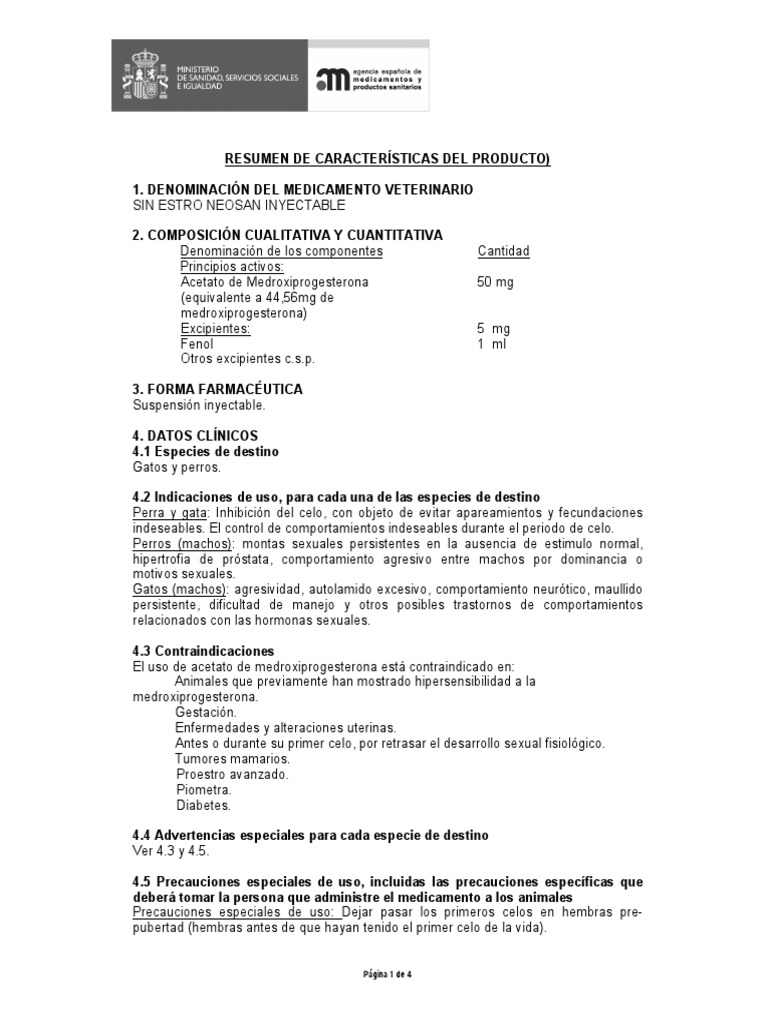SIN ESTRO NEOSAN INYECTABLE, cuyo principio activo es el Acetato de
