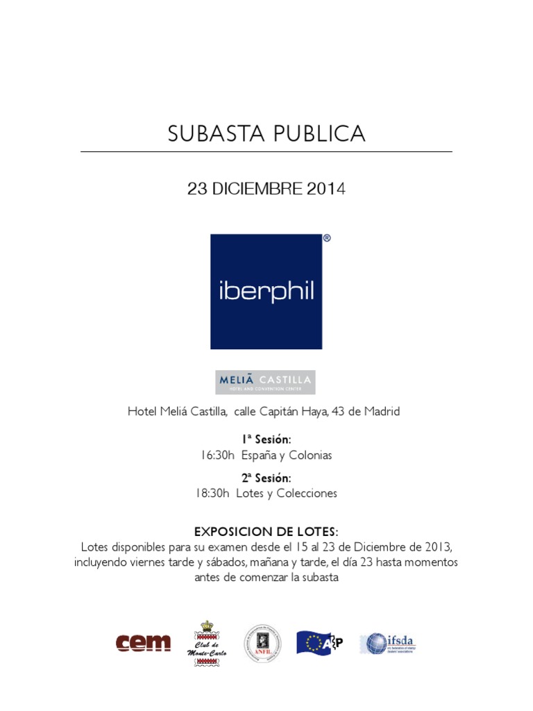price, the order of bid prevails over the room. In case of coincidence power the philatelic pieces up to his total liquidation. of the buyer. Iberphil offers his services and professional knolegde to