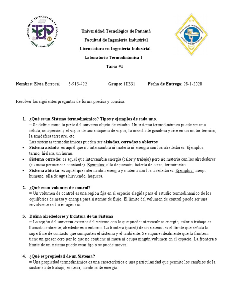 1. ¿Qué es un Sistema termodinámico? Tipos y ejemplos de cada uno.
