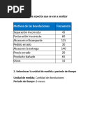 1. Identificar el porcentaje del motivo de devoluciones que se genera