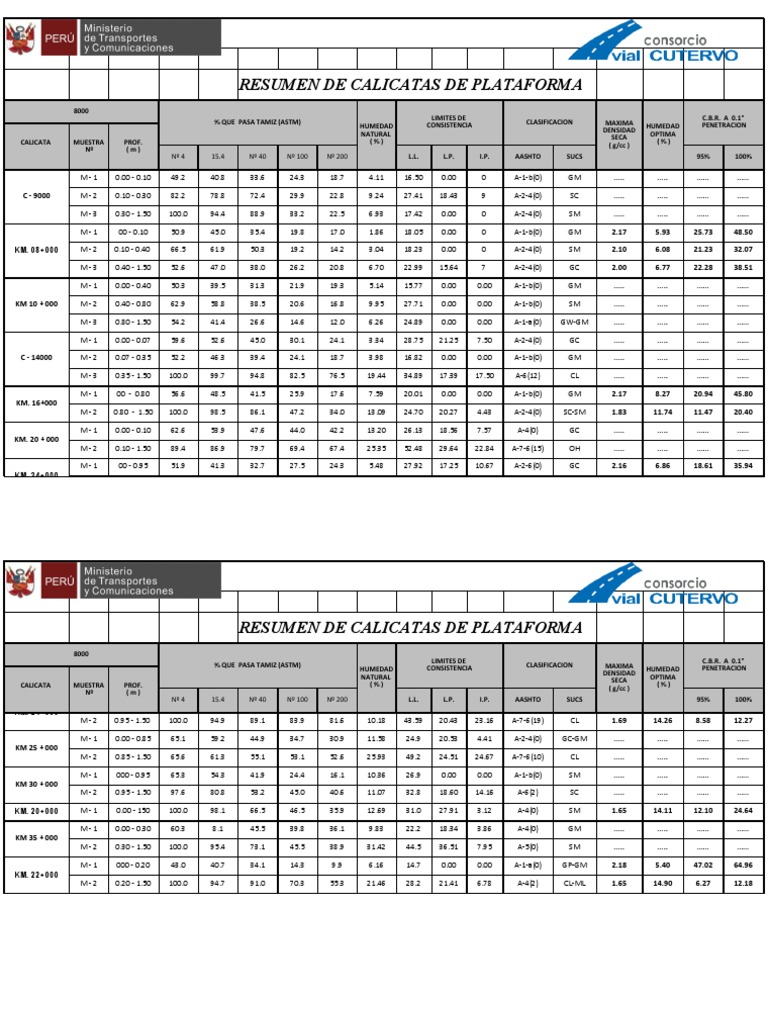 RESUMEN DE CALICATAS DE PLATAFORMA