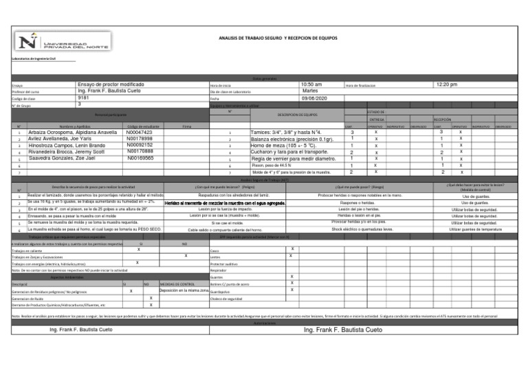 ANALISIS DE TRABAJO SEGURO Y RECEPCION DE EQUIPOS