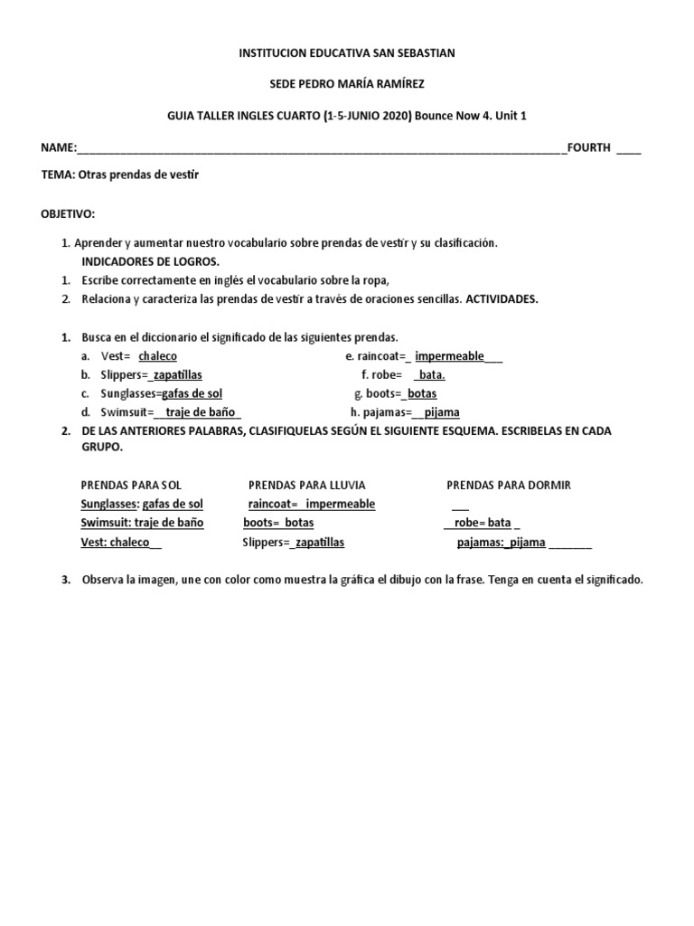 GUIA TALLER INGLES CUARTO (1-5-JUNIO 2020) Bounce Now 4. Unit 1