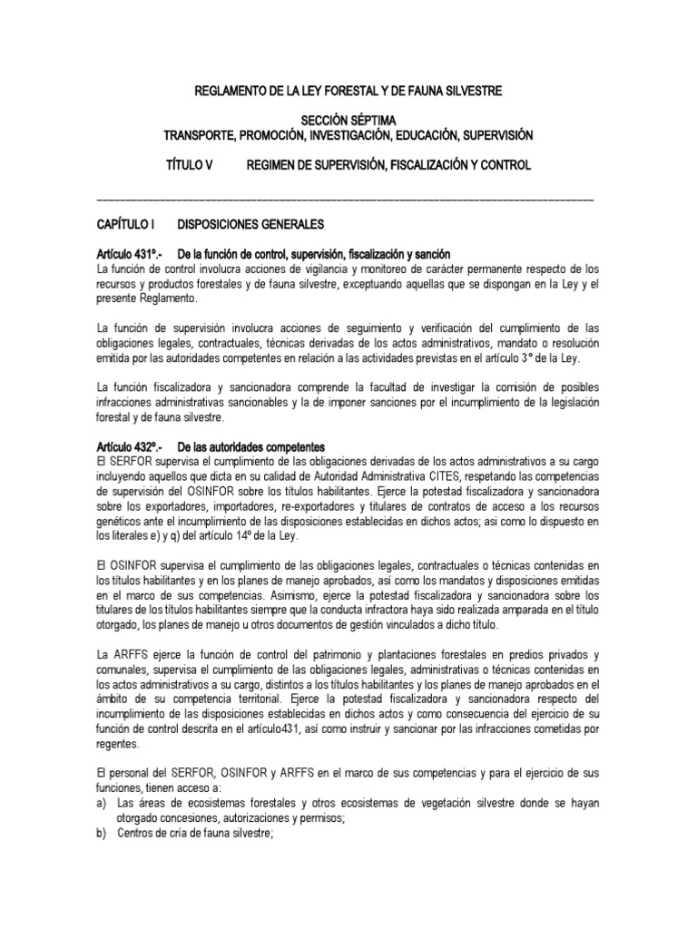 REGLAMENTO DE LA LEY FORESTAL Y DE FAUNA SILVESTRE