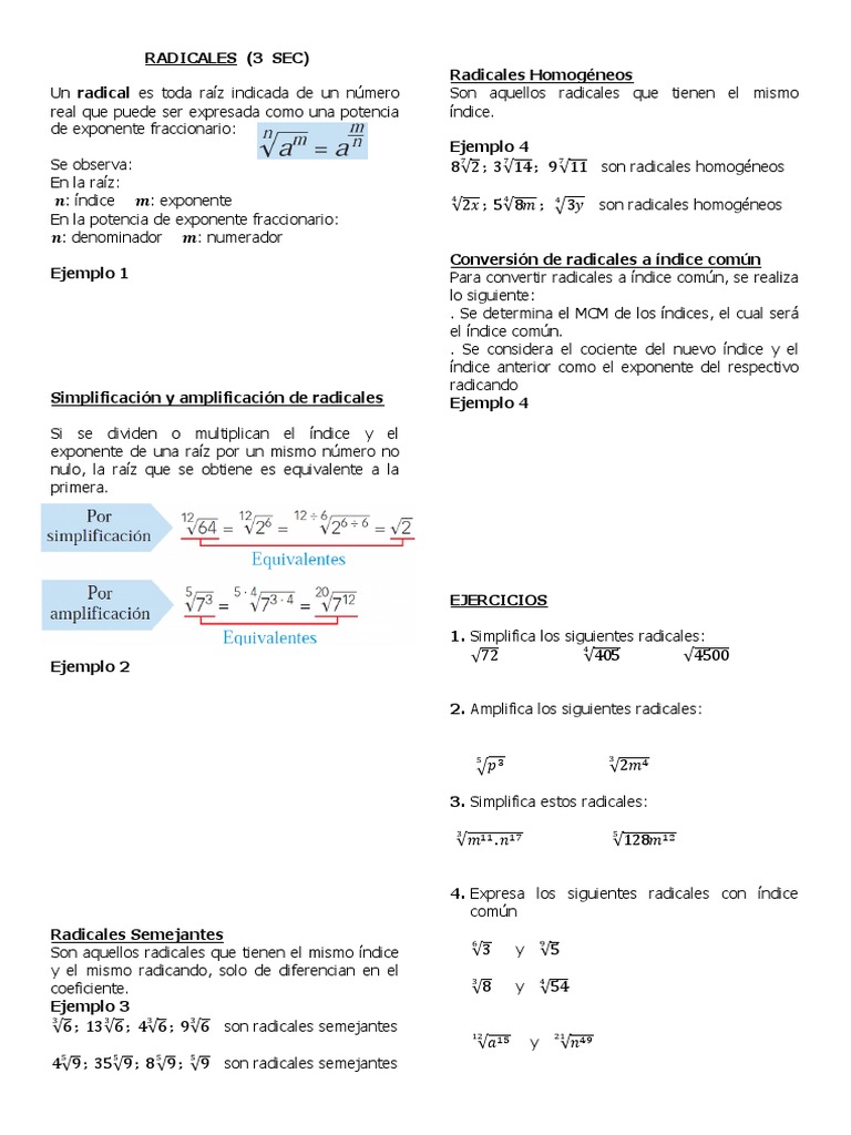 √2𝑥 ; 5√8𝑚 ; √3𝑦 son radicales homogéneos