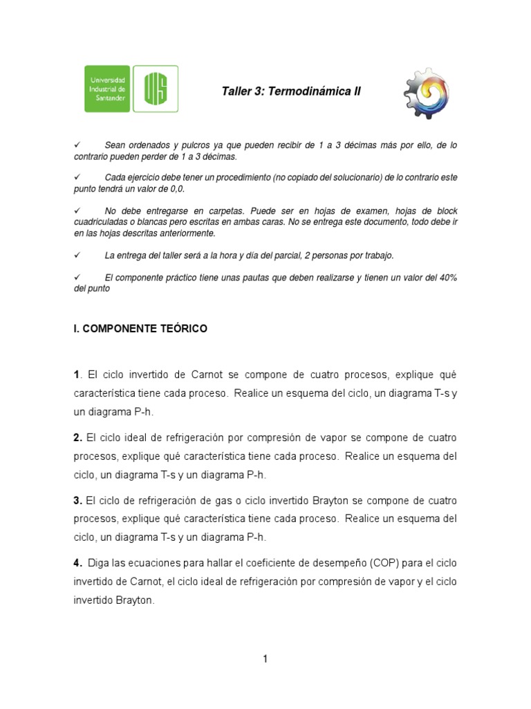 Los puntos 1,2,3,4 deben llevar un esquema y un diagrama T-s y su valor será del 20% del