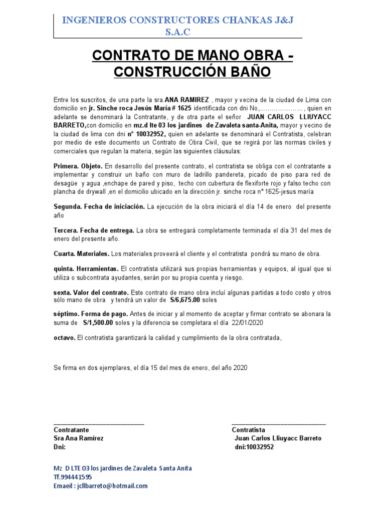 CONTRATO DE MANO OBRA -