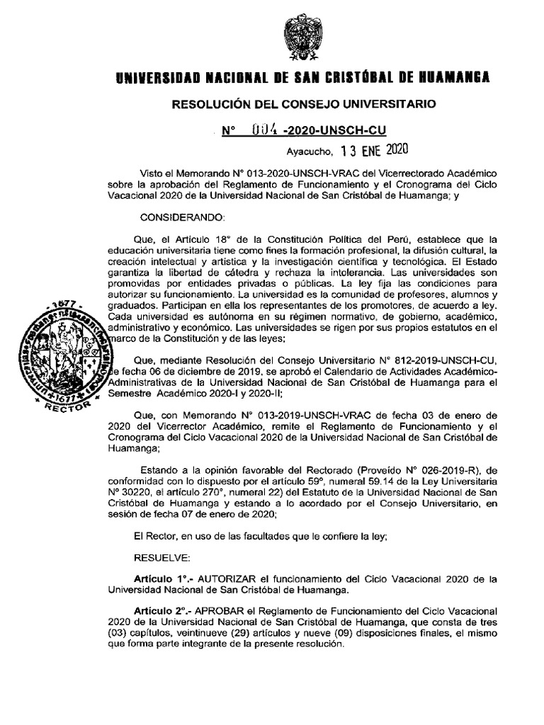 Nº 0 lJ 4 -2020-UNSCH-CU