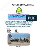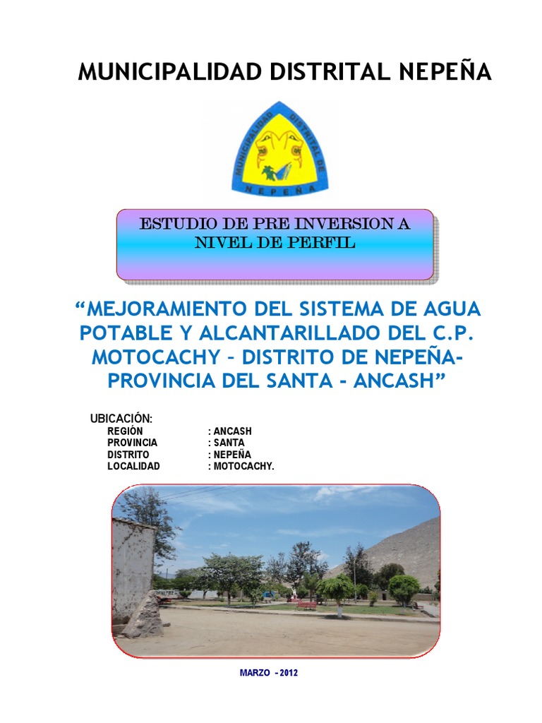 Estudio de Pre Inversión a nivel de Perfil: “Mejoramiento del Sistema de Agua Potable y Alcantarillado del C.P. Motocachy - Distrito de Nepeña-Santa –