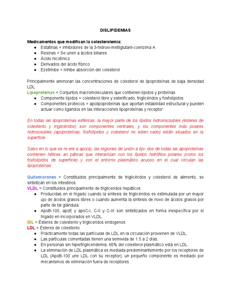 Medicamentos que modifican la colesterolemia: