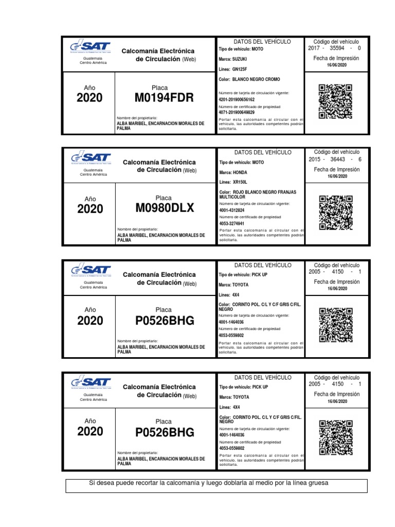 Calcomanía Electrónica Tipo de vehículo: MOTO