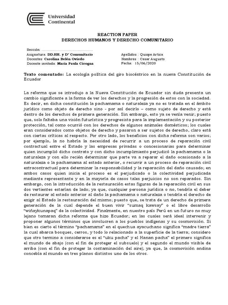 Asignatura: [Link]. y D° Comunitario Apellidos : Quispe Artica