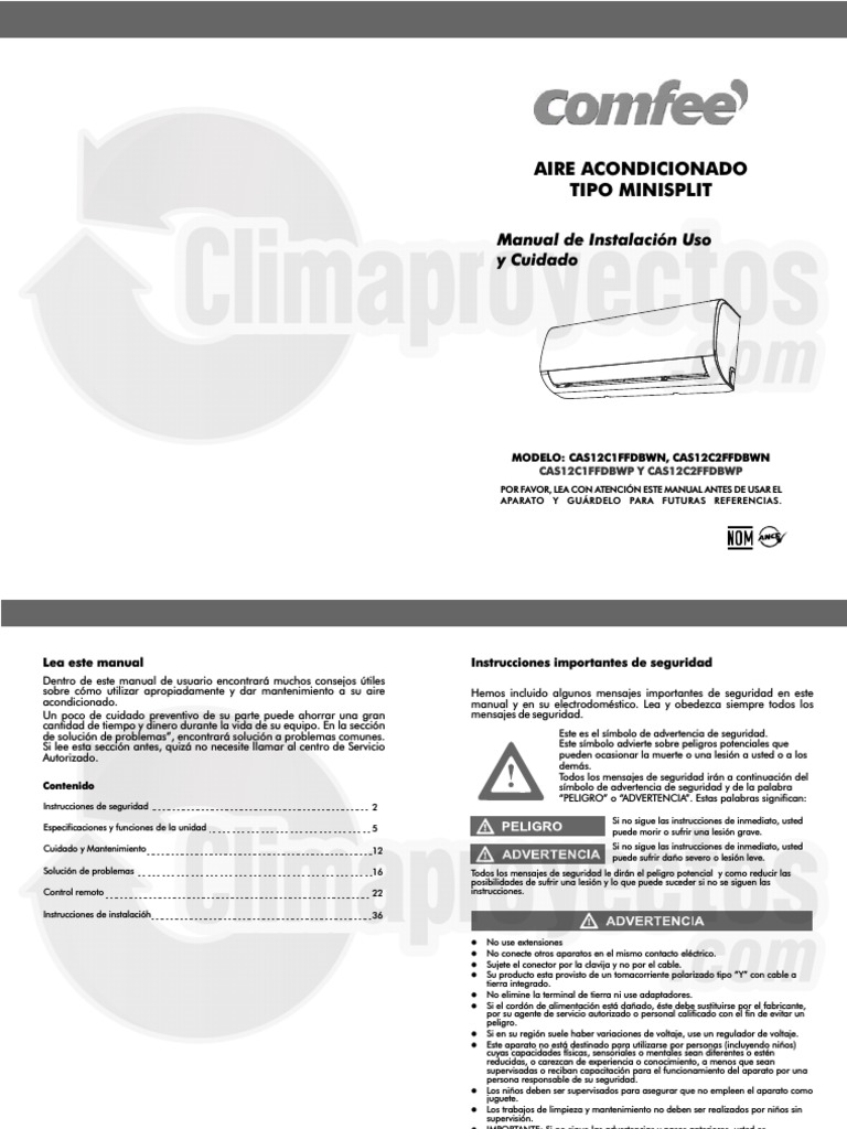 acondicionado. manual y en su electrodoméstico. Lea y obedezca siempre todos los