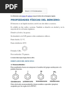 • El benceno es un líquido incoloro de olor fuerte, más ligero que el agua