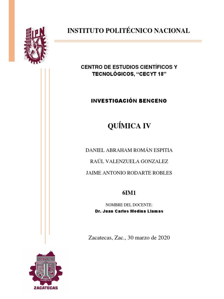 ✓ GANDRBART, C. (s.f). BENCENO. Marzo 29, 2020, de IDEAM Sitio