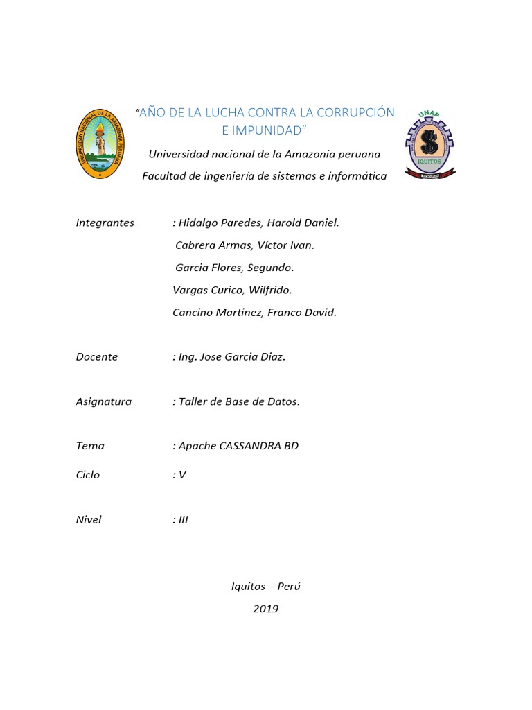 Integrantes : Hidalgo Paredes, Harold Daniel.